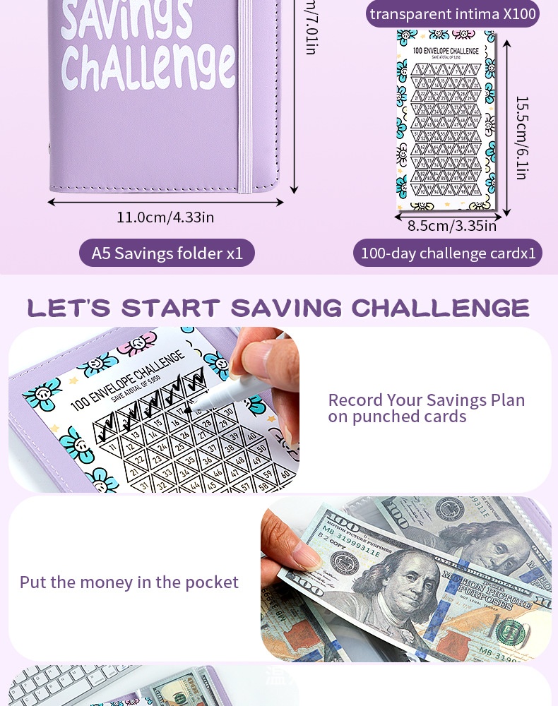 Carnet de rangement pour budget avec enveloppes d’épargne sur 100 jours