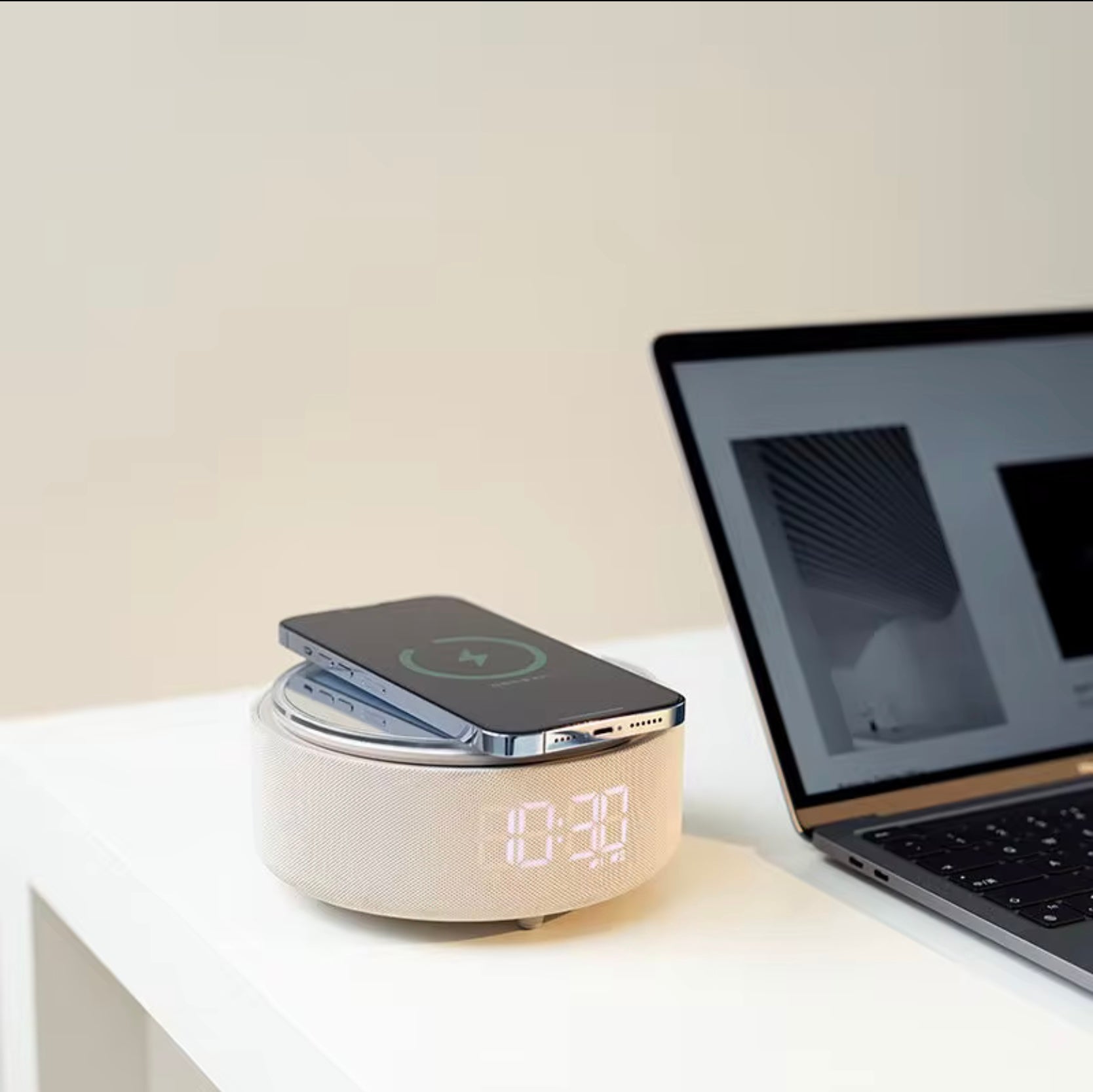Réveil intelligent multifonction avec haut-parleur Bluetooth, chargeur sans fil, miroir LED & veilleuse